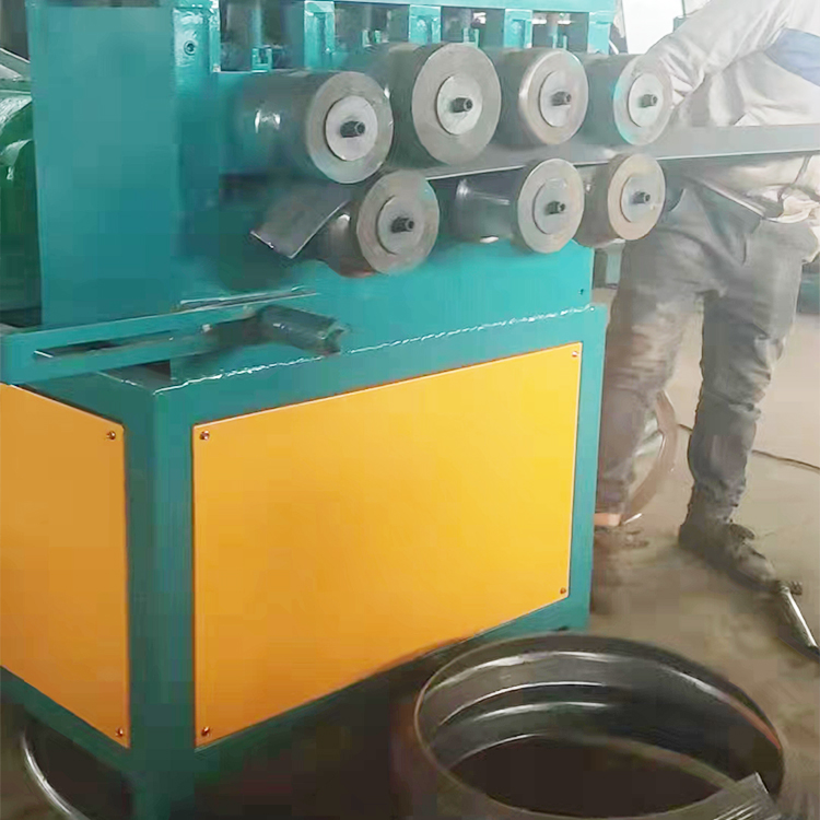 器轮角铁卷圆机 63角钢打圈机 压地机角铁弯圆机 将工字钢放在冷弯机上,与减速股动的滚轮接触后,将压紧手柄进给锁紧,发起电机油泵组,由电动油泵输出的高压溢流阀(可调整压力),进入集成块到电缆阀,有电液阀和动点开关(点进,点退)控制油缸作业,作业油缸推进,将工字钢与三个支撑游轮压紧并为发生弯曲变形是时初步核算,油缸推进的长度进程为10mm-15mm,开主电机股动工字钢作业,重复操作,抵达所需中止。
